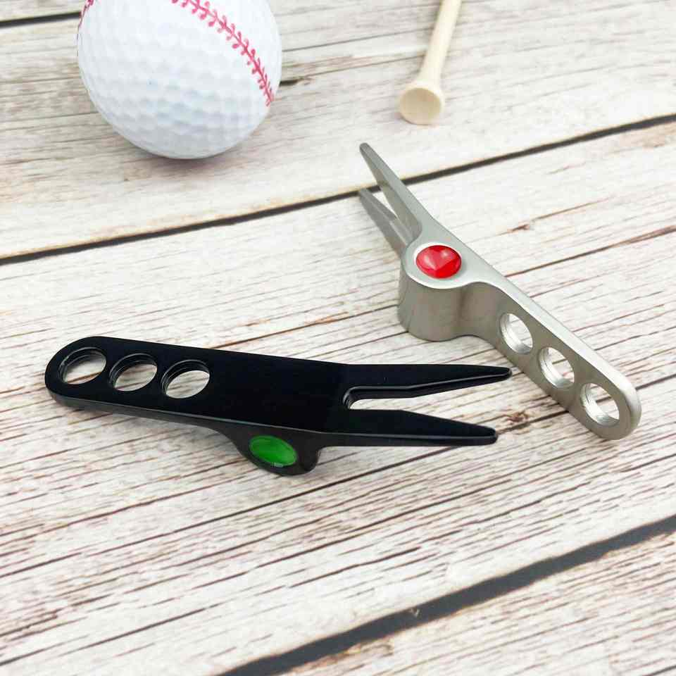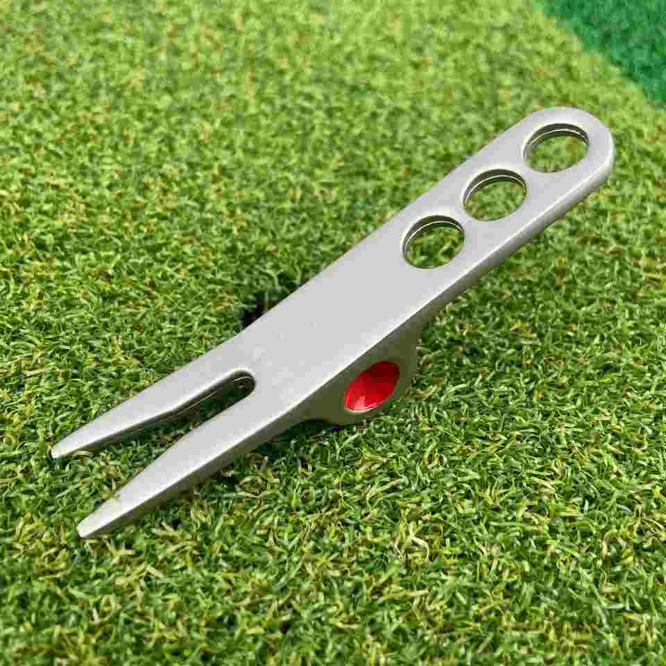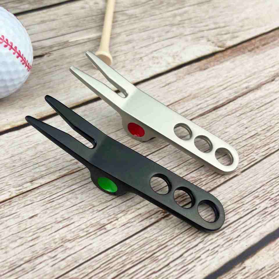 ตะเกียบซ่อมสนามกอล์ฟแบบใหม่ ผลิตจากโลหะผสมสังกะสี สำหรับซ่อมพื้นสนาม พร้อมที่เก็บเศษดินสีเขียว ทำจากอะลูมิเนียม ผลิตในจีน รุ่น USA