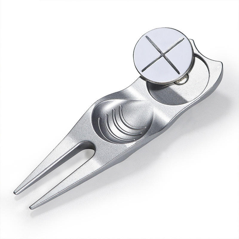 เครื่องมือซ่อมกรีนกอล์ฟแบบใหม่ ผลิตจากโลหะผสมสังกะสีชุบเงิน พร้อมปากกาเขียนและอุปกรณ์ซ่อมสนามหญ้า รวมถึงผ้าเช็ดไม้กอล์ฟ