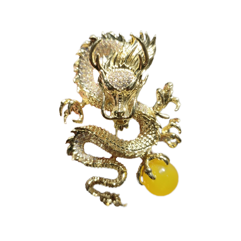 เข็มกลัดทองแดงประดับเพทายรูปมังกรตามปีนักษัตร ดีไซน์ทันสมัย เหมาะสำหรับทุกเพศ เป็นของขวัญวันพ่อ