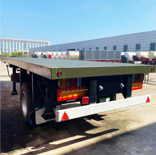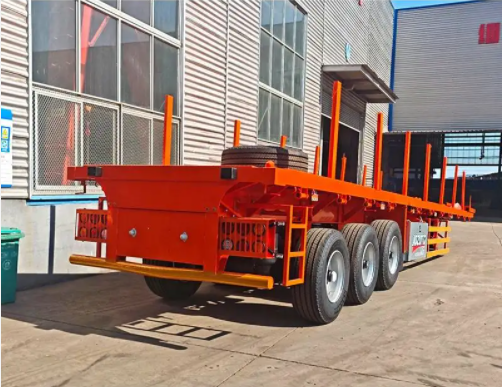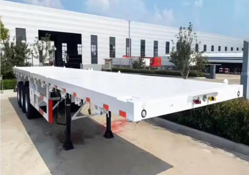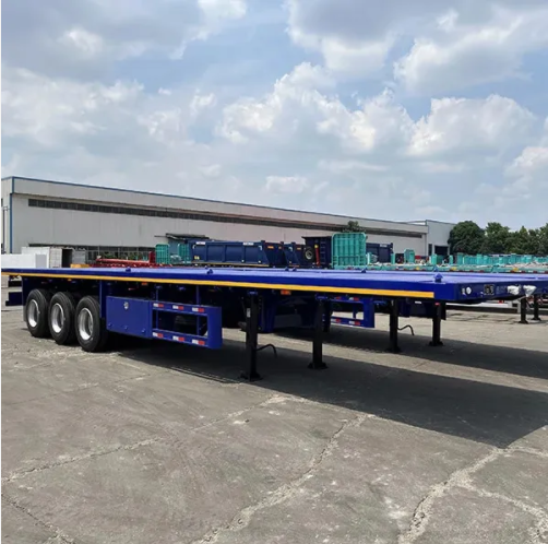 รถพ่วงพื้นเรียบสามเพลาขนาด 40 ฟุต ใหม่และมือสอง รับน้ำหนักได้สูงสุด 40 ตัน ความจุ 10-50 ตัน มีจำหน่าย