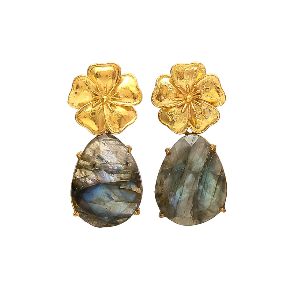 ต่างหูดอกไม้สีทองมาใหม่พร้อมอัญมณีตาเสือในชุดกระดุมดอกไม้สําหรับผู้หญิงและเด็กผู้หญิง