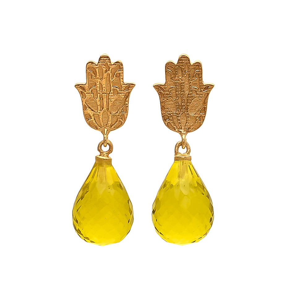 ต่างหูดีไซน์กลีบดอกไม้สไตล์ทองมาใหม่พร้อมต่างหูพลอยไฮดราซิทรินที่สวยงามโดยอัญมณี