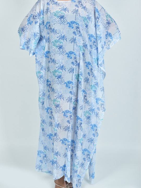 เดรสแม็กซี่ยาวสำหรับผู้หญิงพิมพ์ลายดอกไม้คอกลมใส่สบายเนื้อผ้าคุณภาพสูง