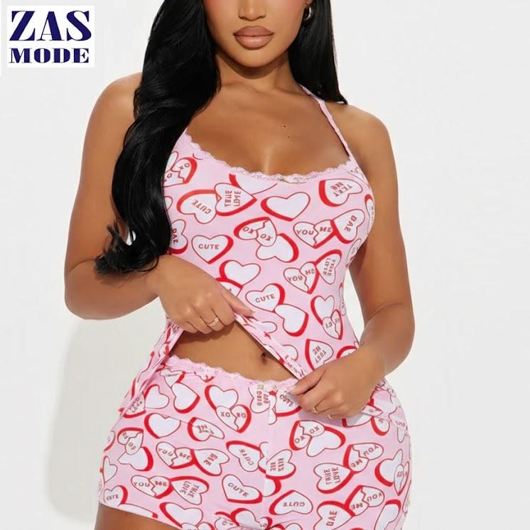 ชุดนอนผู้หญิงลายดอกเล็กๆ แบบใหม่รับซัมเมอร์ เนื้อผ้านุ่ม สายเดี่ยวบาง คอวี เสื้อกล้ามกางเกงขาสั้นลายกุหลาบ