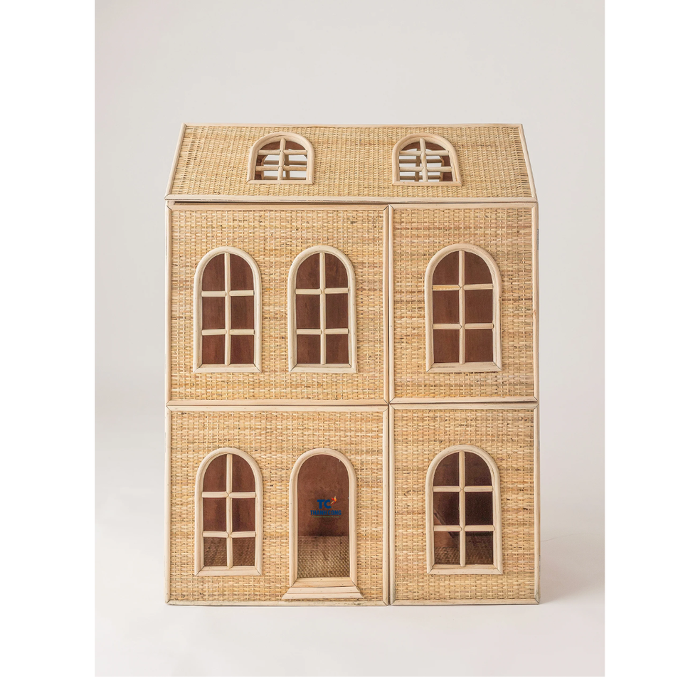 ผู้ค้าส่งเวียดนามมาใหม่ดูน่ารักเป็นมิตรกับสิ่งแวดล้อมบ้านตุ๊กตาหวายทําด้วยมือสําหรับเด็ก