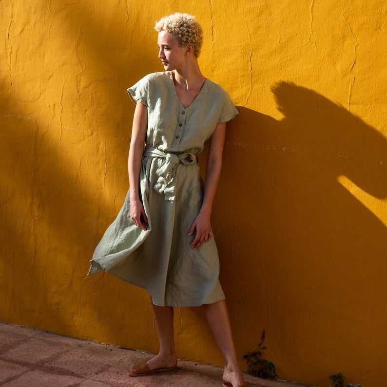 เดรสผ้าเครปสีบรอนซ์แฟชั่นทันสมัยมาแรงประจำปี 2026 สำหรับฤดูร้อน แขนสั้น ผ้าลินิน 100%