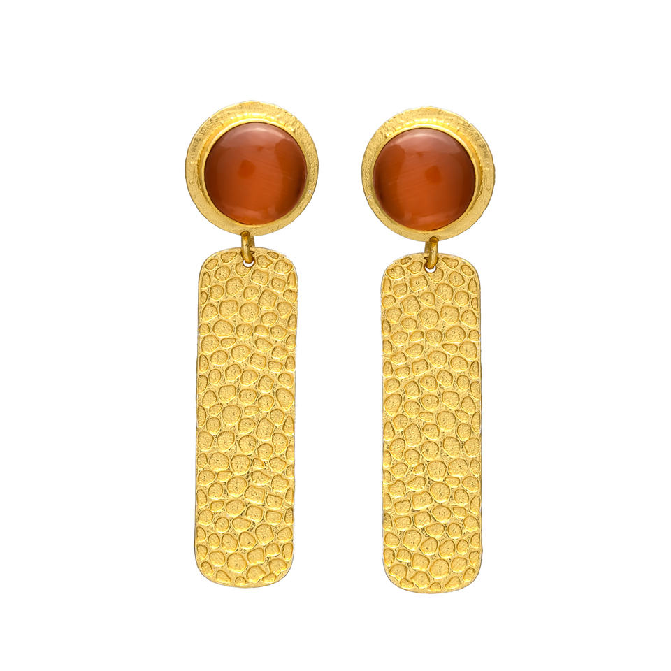 ต่างหูห้อยดีไซน์โดดเด่นชุบทองคำประดับพลอยสีส้มโมนาลิซ่า ต่างหูทองเหลืองสำหรับผู้หญิงและเด็กผู้หญิง
