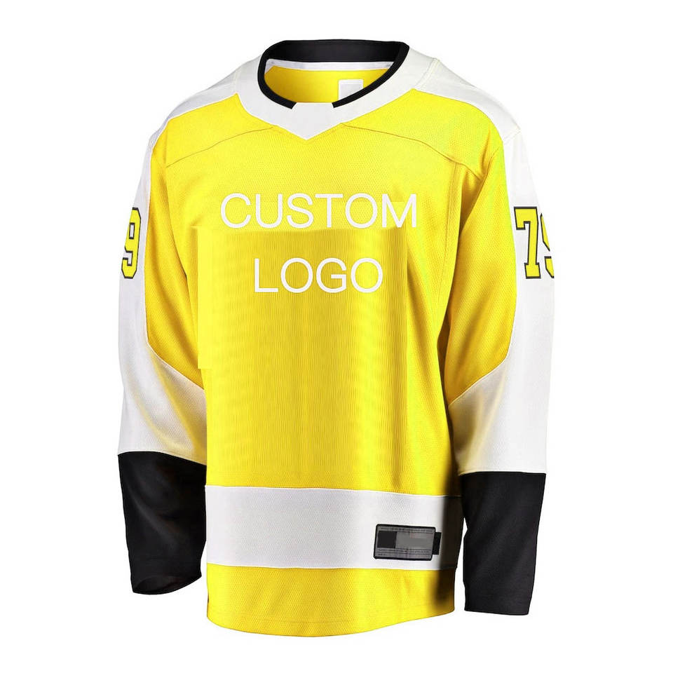 เสื้อเจอร์ซีย์เล่นฮ็อกกี้น้ำแข็งผ้าเจอร์ซี่น้ำหนักเบาขนาดใหญ่ออกแบบได้เอง