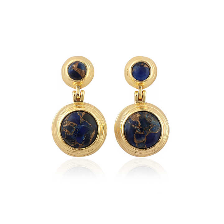 ต่างหูทรงหยดน้ำประดับมอฮาวีแซฟไฟร์ คัปเปอร์ เทอร์ควอยซ์ รูปทรงกลม ดีไซน์ใหม่ ชุบทอง 18k เครื่องประดับแฟชั่น ต่างหูโดดเด่น