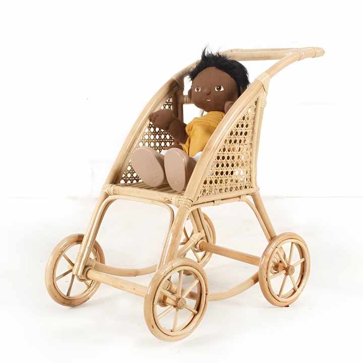 รถเข็นเด็กทำจากหวายทำมือรถเข็นสำหรับตุ๊กตามาใหม่