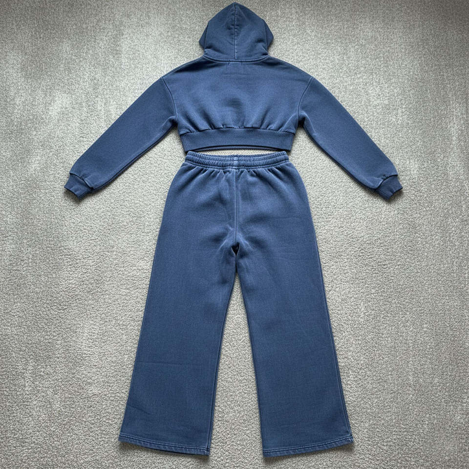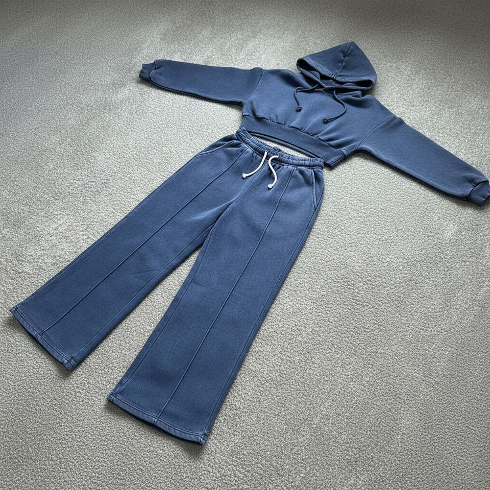 สินค้ามาใหม่ 2026 ชุดเซ็ต 2 ชิ้น เสื้อครอปฮู้ดดี้ผ้าฝ้าย 100% ซักแล้ว ทรงหลวม พร้อมกางเกงขายาวทรงหลวม คุณภาพดีที่สุด สไตล์ล่าสุด ชุดเซ็ตผู้หญิง