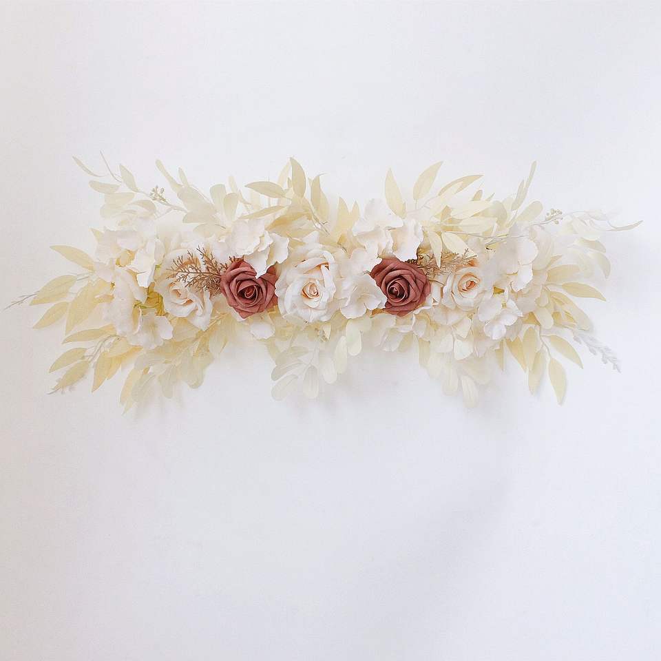 เก้าอี้โต๊ะทานอาหารกระจกด้านหน้าประตูดอกไม้เทียมใหม่สำหรับตกแต่งงานแต่งงานทำจากดอกกุหลาบดอกไม้ประดิษฐ์