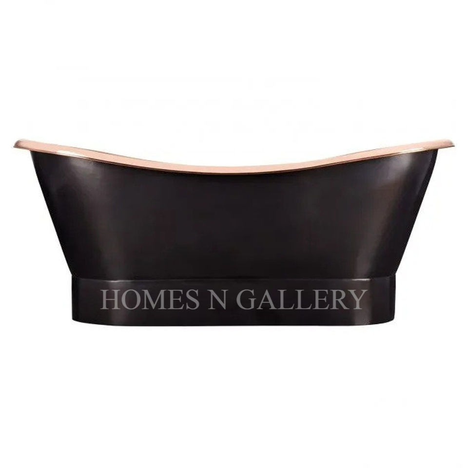 อ่างอาบน้ำเหล็กทองแดงสีดำด้านแบบใหม่ที่น่าสนใจอ่างอาบน้ำทรงรีอิสระแบบพกพาพร้อมฟังก์ชั่นแช่ท่อระบายน้ำ
