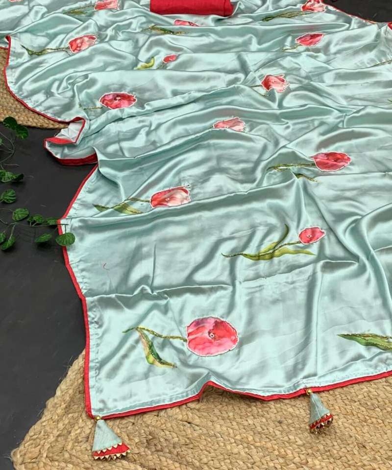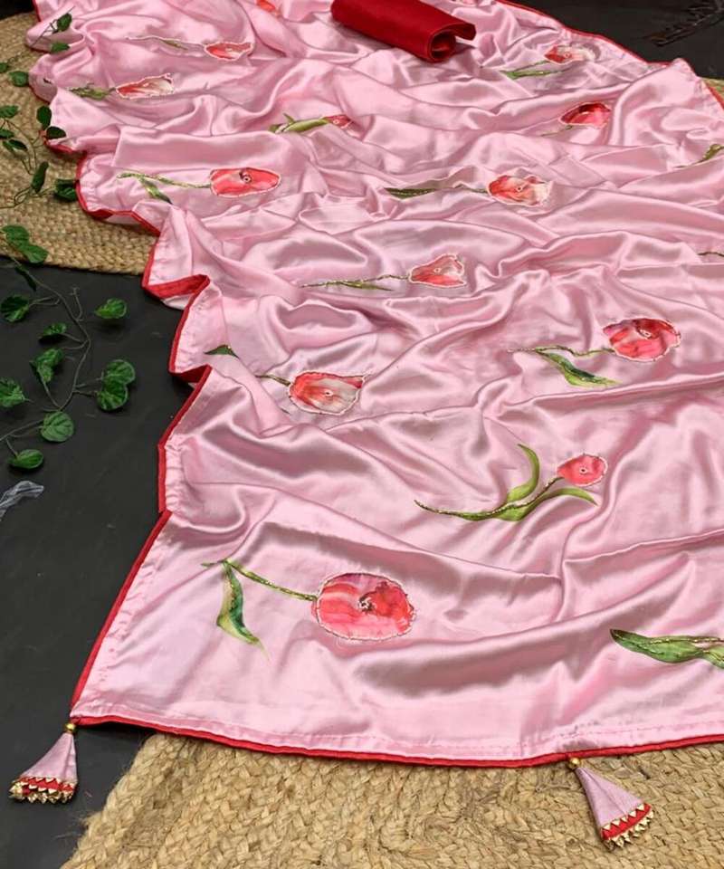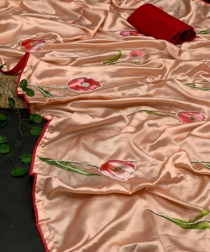 ชุดผ้าซาตินพิมพ์ลายดิจิทัลพร้อมเสื้อชิ้นหนึ่งของสตรีชาวอินเดียส่าหรี