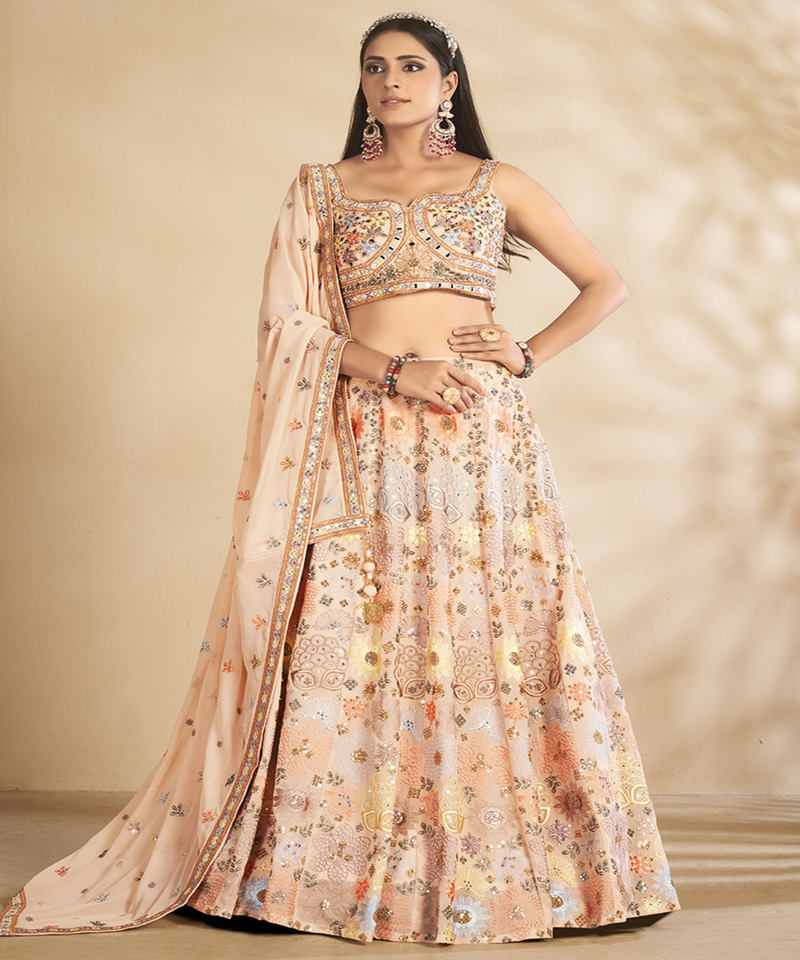 ชุดแต่งงานที่น่าสนใจใหม่ผ้า Taffeta choli lehenga choli กับ dupatta อินเดียผู้หญิงสวมกึ่งเย็บขายส่ง surat