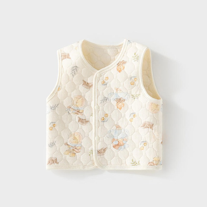 เสื้อกั๊กเด็กอ่อน ผ้าฝ้ายแท้ อุ่นสบาย ปกป้องหน้าท้อง เสื้อแขนกุดเนื้อนุ่มสำหรับเด็ก