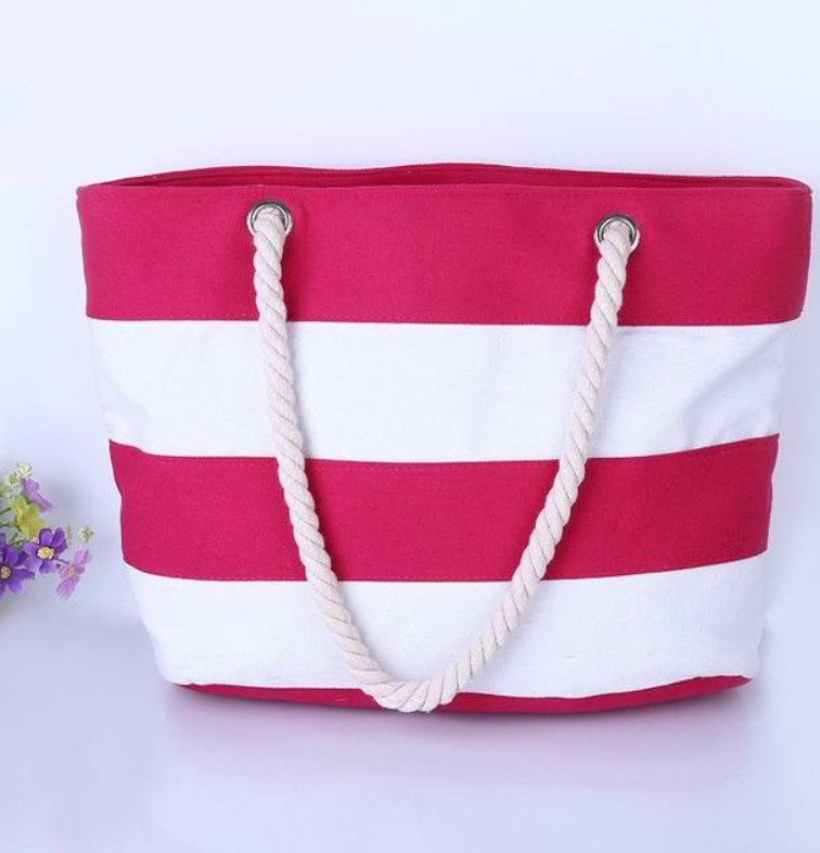 ใหม่กระเป๋าชายหาดแฟชั่นผู้หญิงผ้าใบฤดูร้อนความจุขนาดใหญ่กระเป๋าสะพายลายทางกระเป๋าช้อปปิ้ง
