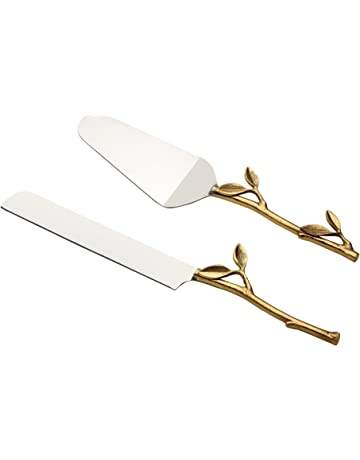 มีดสแตนเลสทองเหลืองสำหรับงานวันเกิดงานแต่งงานปาร์ตี้มีดเค้กทองเหลืองใหม่และมีดเค้กพร้อมใบมีดในการออกแบบ