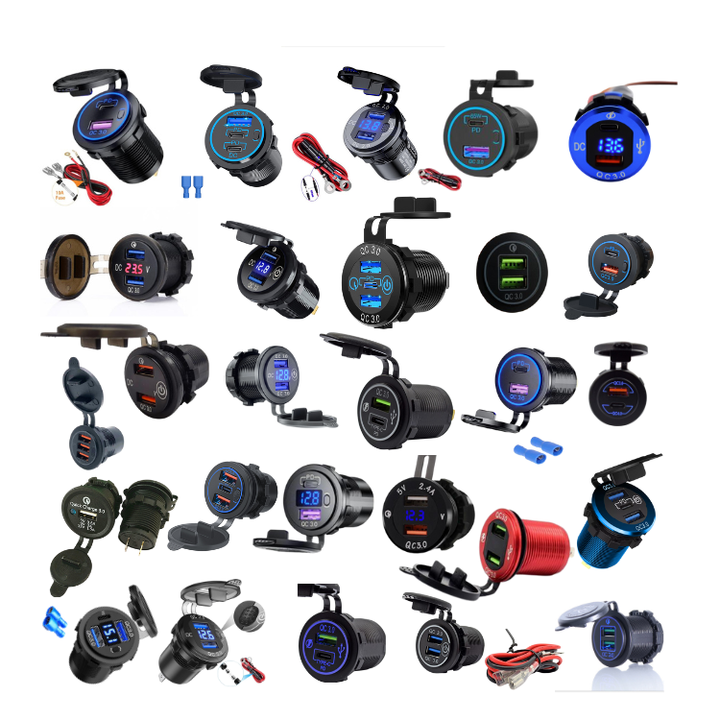 ใหม่20W PD + QC3.0ชาร์จเร็ว12-24V พร้อม Type-C + Type-A พอร์ตและสวิตช์สำหรับ iPhone