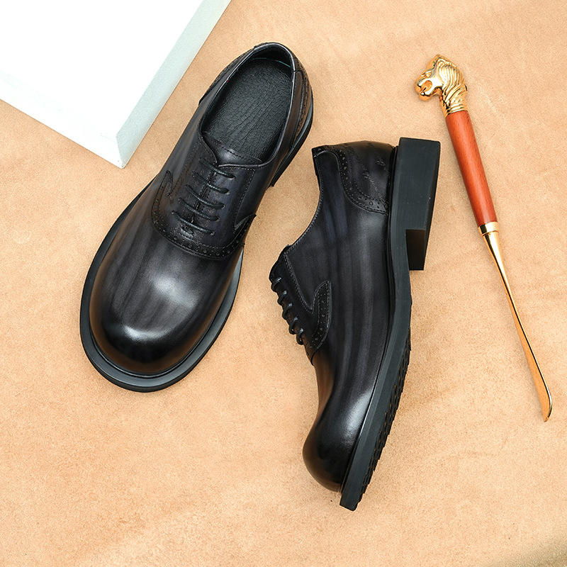 รองเท้าหนังสีใหม่ ระบายอากาศได้ดี ทนทาน แบบผูกเชือก สไตล์ลำลองสำหรับธุรกิจ เพิ่มความสูง คุณสมบัติกันน้ำ เหมาะสำหรับฤดูใบไม้ร่วง
