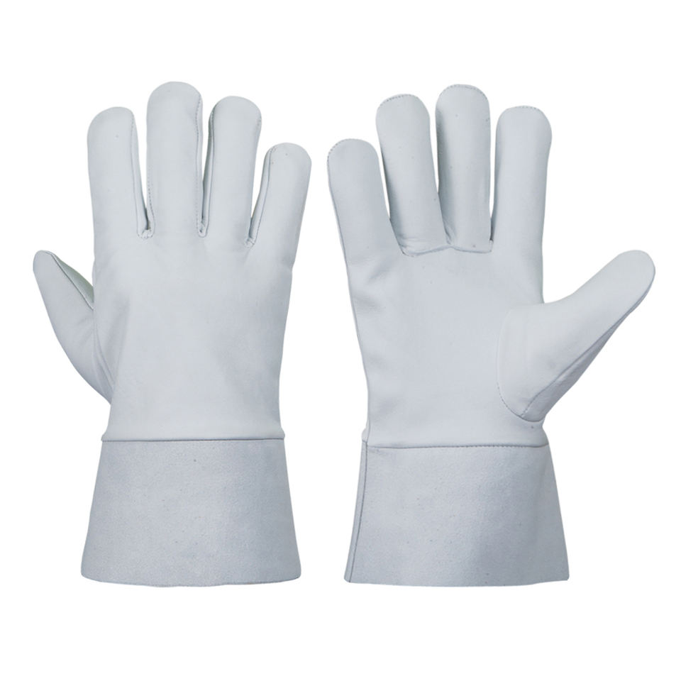 ถุงมือกันความร้อนสำหรับงานเชื่อมเชื่อมโพลีเอสเตอร์สีขาวทนทานต่อความร้อนในการทำงาน