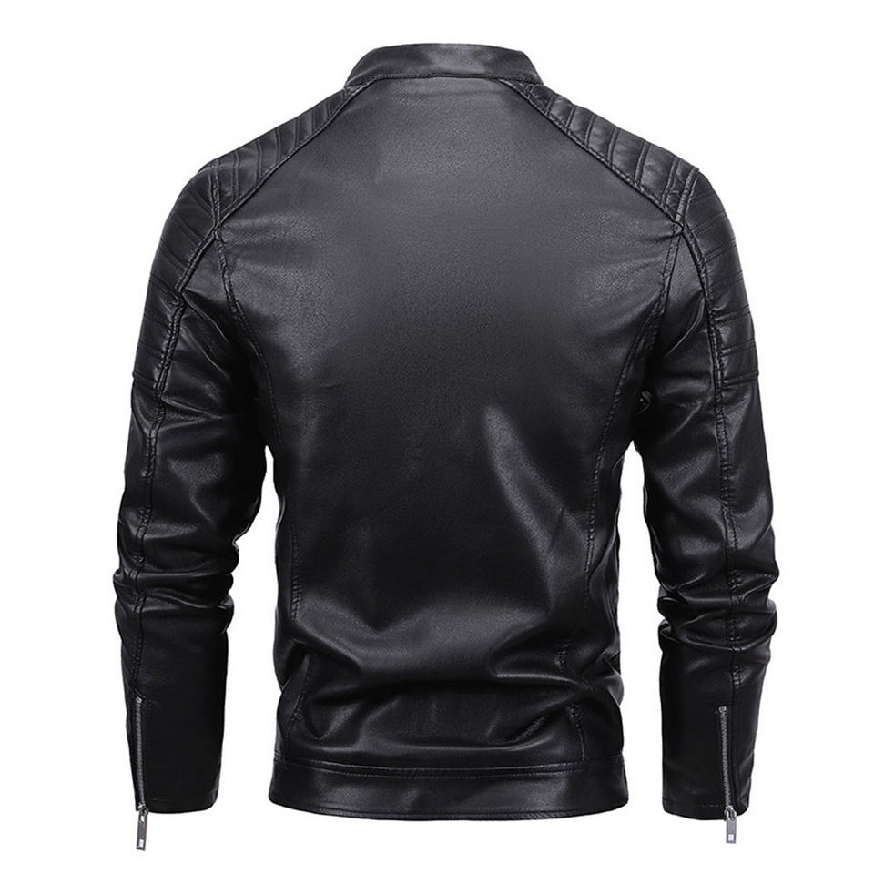 แจ็คเก็ตหนัง PU คุณภาพดีแบบใหม่สำหรับผู้ชายและวัยรุ่นชาวยุโรปและอเมริกา แจ็คเก็ตพังก์คอตั้งยาวสำหรับฤดูหนาว