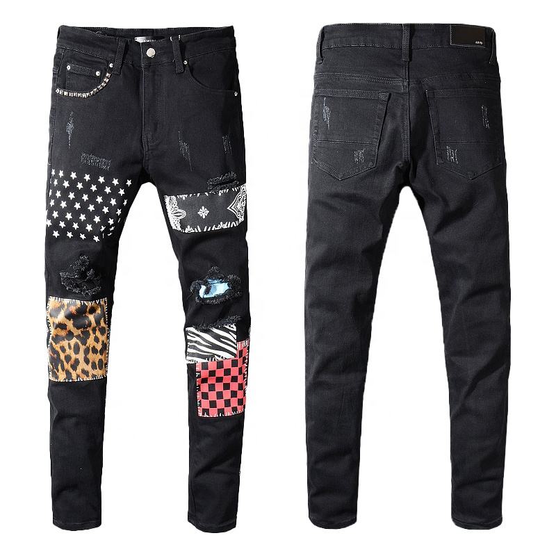 กางเกงยีนส์ทรงสกินนี่เข้ารูปสำหรับผู้ชาย,กางเกงยีนส์แฟชั่นเข้ารูปแบบขาดสำหรับผู้ชายกางเกงยีนส์ขายาวสำหรับผู้ชาย