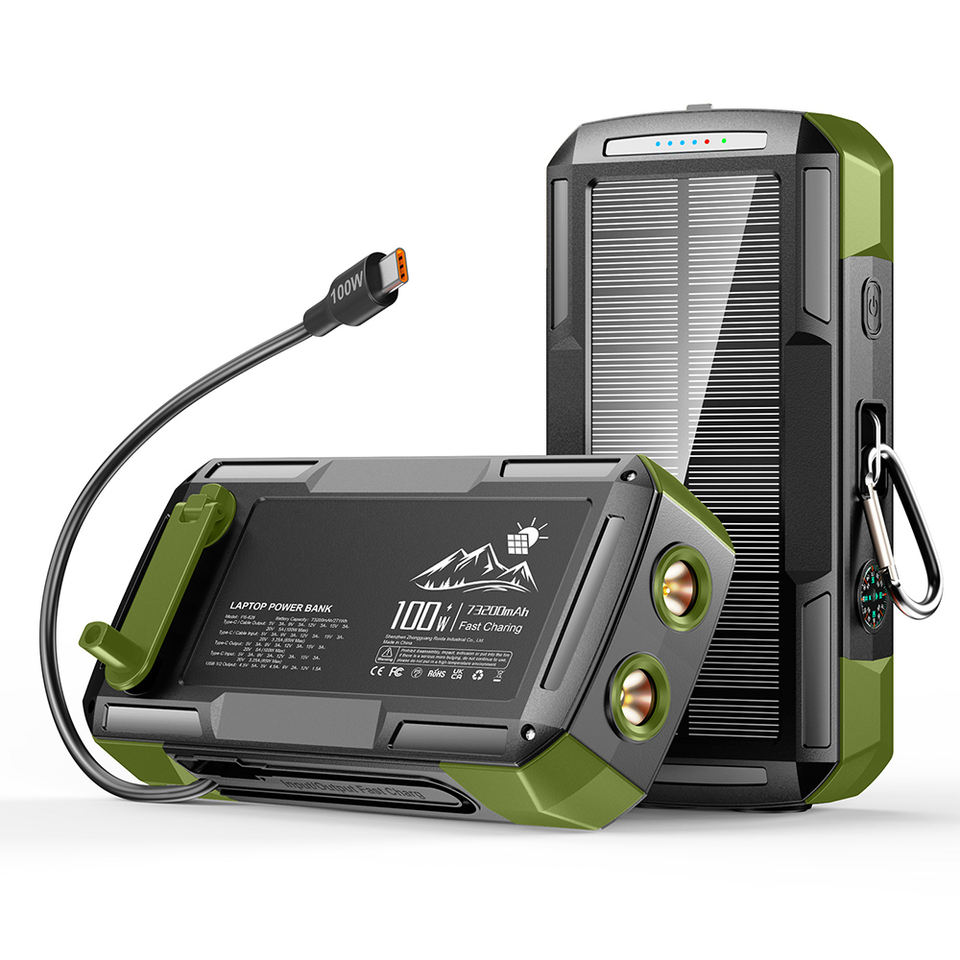 แบตสำรองพลังงานแสงอาทิตย์แบบมือหมุน ดีไซน์ใหม่ ความจุ 73200mAh 100W ชาร์จเร็ว QC 3.0 65W แบตเตอรี่พกพาสำหรับแล็ปท็อป พร้อมสายชาร์จ