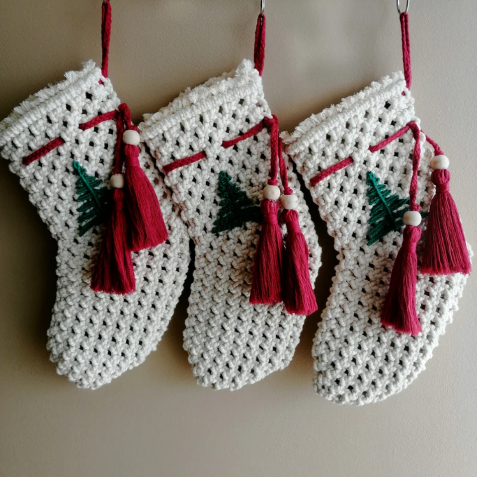 การออกแบบใหม่Macrameคริสต์มาสสต็อกโบฮีเมียนคริสต์มาสของขวัญต้นไม้เครื่องประดับตกแต่งบ้านทําด้วยมือจากเวียดนาม