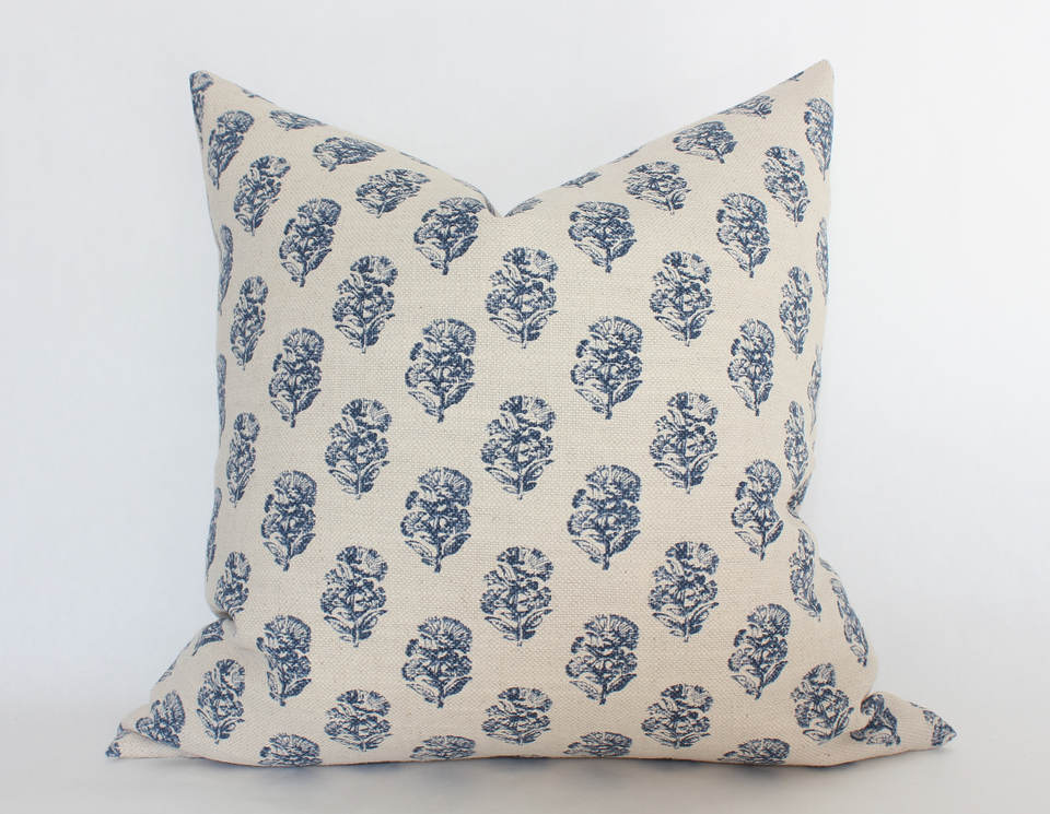 หมอนลายดอกไม้สีน้ำเงินกรมท่าสำหรับโซฟาหมอนลายดอกไม้สีฟ้าครามดีไซน์ใหม่