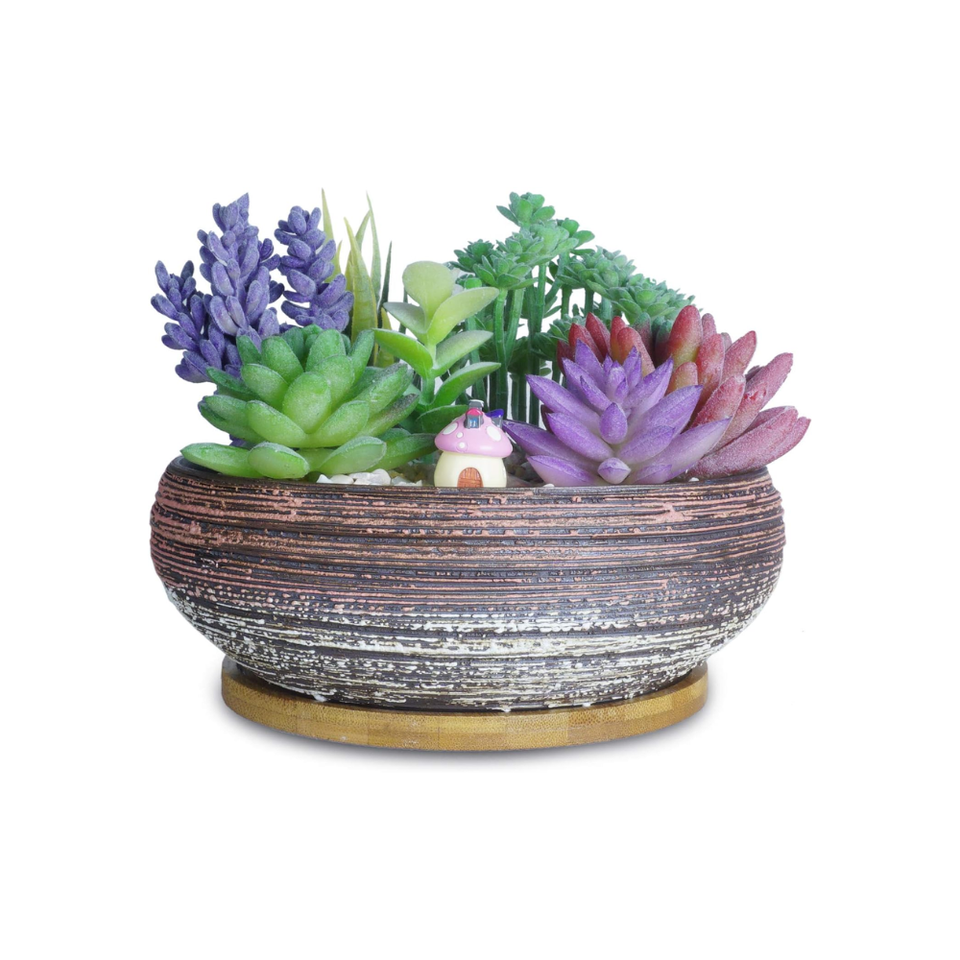 ชื่อผลิตภัณฑ์:กระถางบอนไซไม้ไผ่ปั่นทรงกลมแนวชนบท
