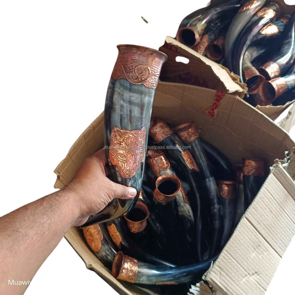 เขาควายแท้ 100% คุณภาพดี ดีไซน์ใหม่ แก้วน้ำทรงวiking พร้อมห่วงทองแดง สไตล์วiking สำหรับดื่มเบียร์ ราคาถูกที่สุด