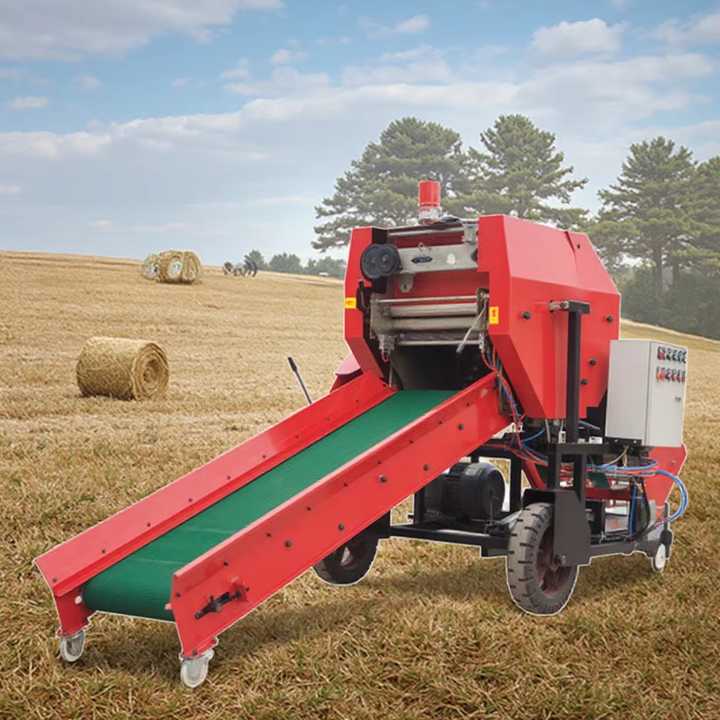 เครื่องอัดฟางทรงสี่เหลี่ยมข้าวสาลีทรงกลมเครื่องอัดฟางดีไซน์ใหม่