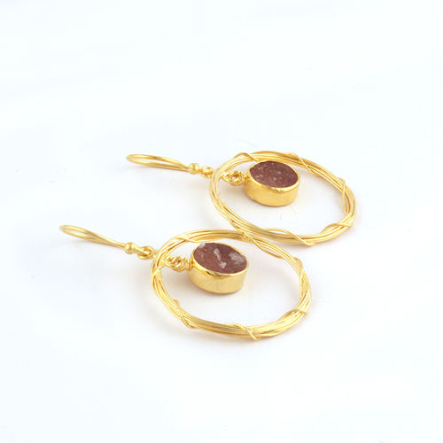 การออกแบบใหม่ที่มีเสน่ห์ดิบเชอร์รี่ควอตซ์ที่ทำด้วยมืองบต่างหูลวดชุบทองห่อแขวนวางห้อยต่างหูเครื่องประดับ