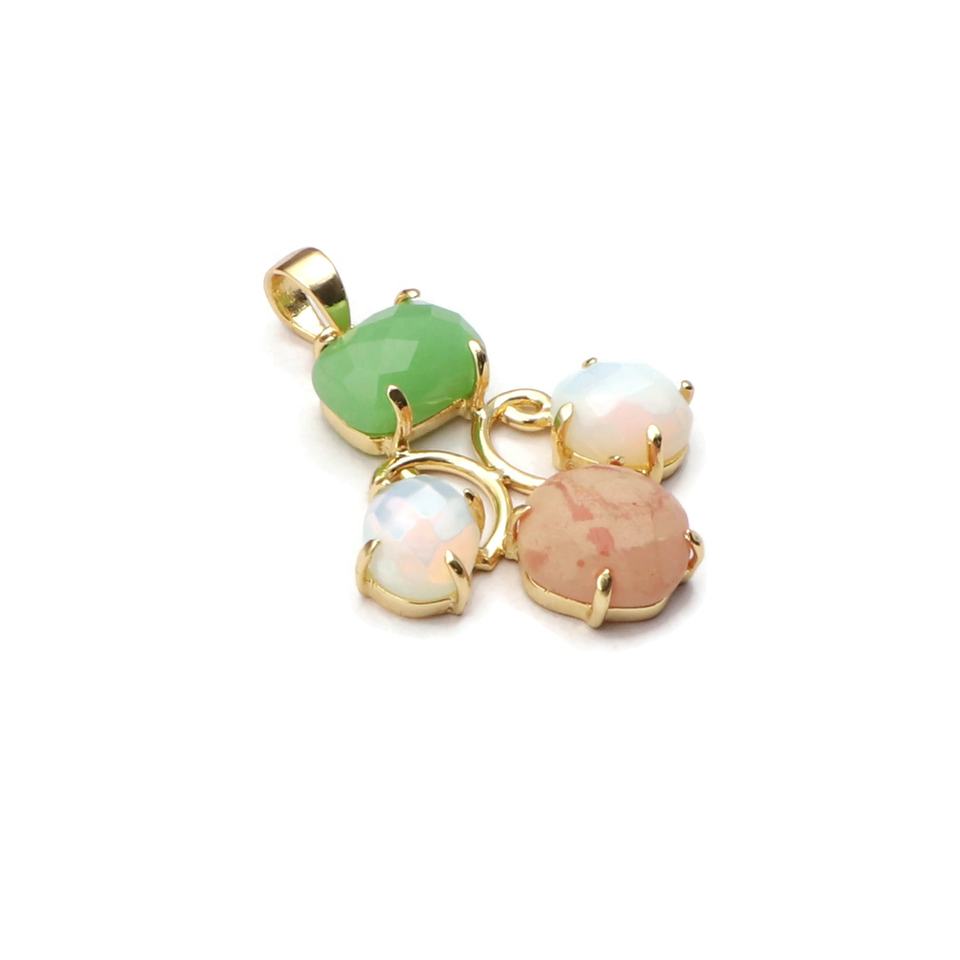 จี้ทองชุบดีไซน์ใหม่ แฟชั่นอินเทรนด์ ประดับพลอยเจียระไนทรงเหลี่ยม สีเขียว/ขาว คริสโซเพรส/โอเพไลต์/ควอตซ์