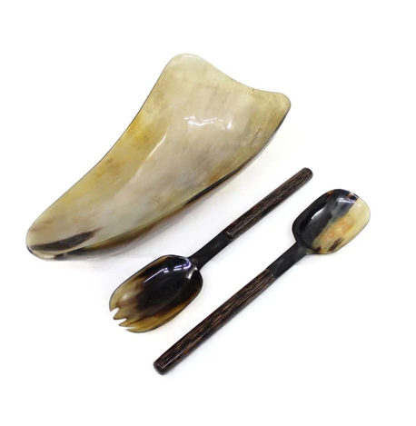 ช้อนสลัดฮอร์นออกแบบใหม่พร้อมชามขัดเงาภาชนะใส่อาหารในห้องครัว
