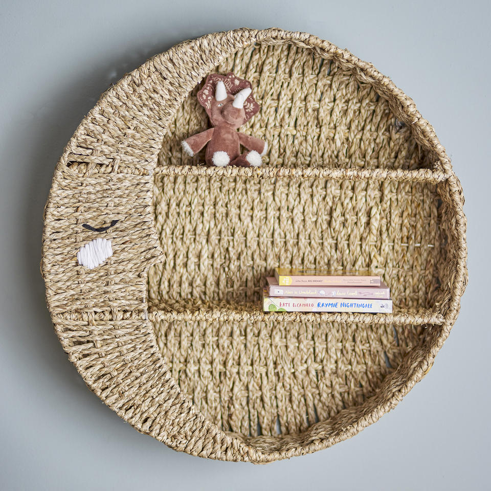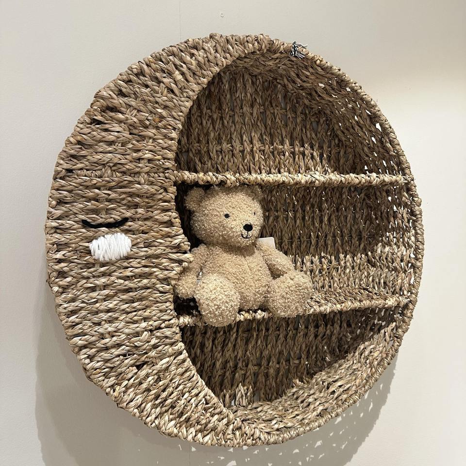 ชั้นวางหนังสือแขวนผนังรูปพระจันทร์ลายหญ้าทะเลดีไซน์ใหม่สำหรับห้องเด็กน่ารัก