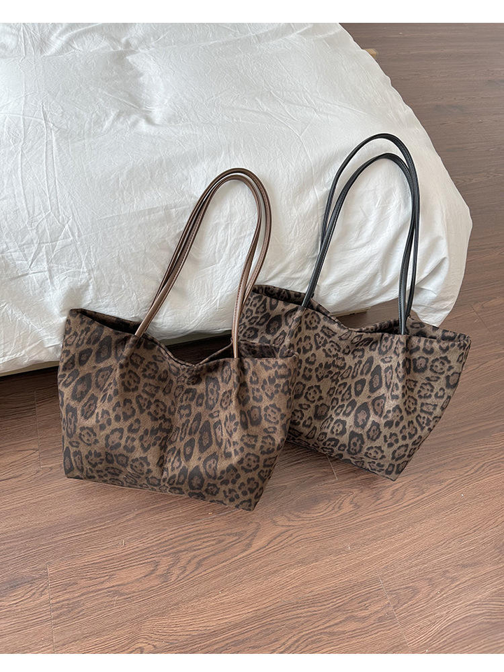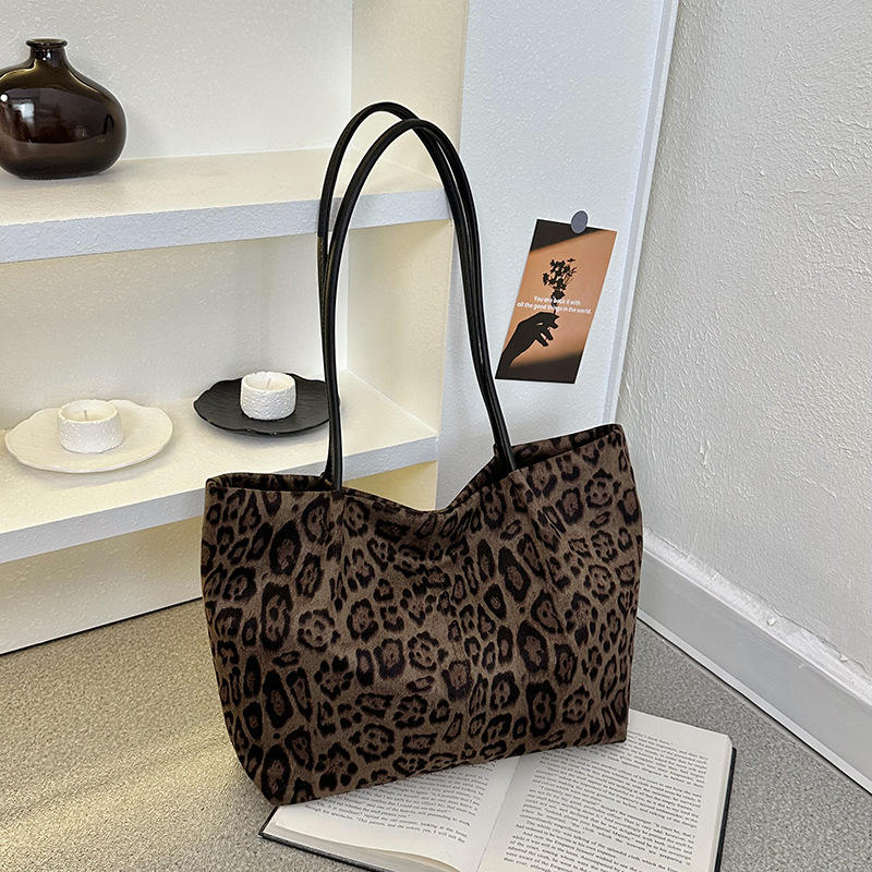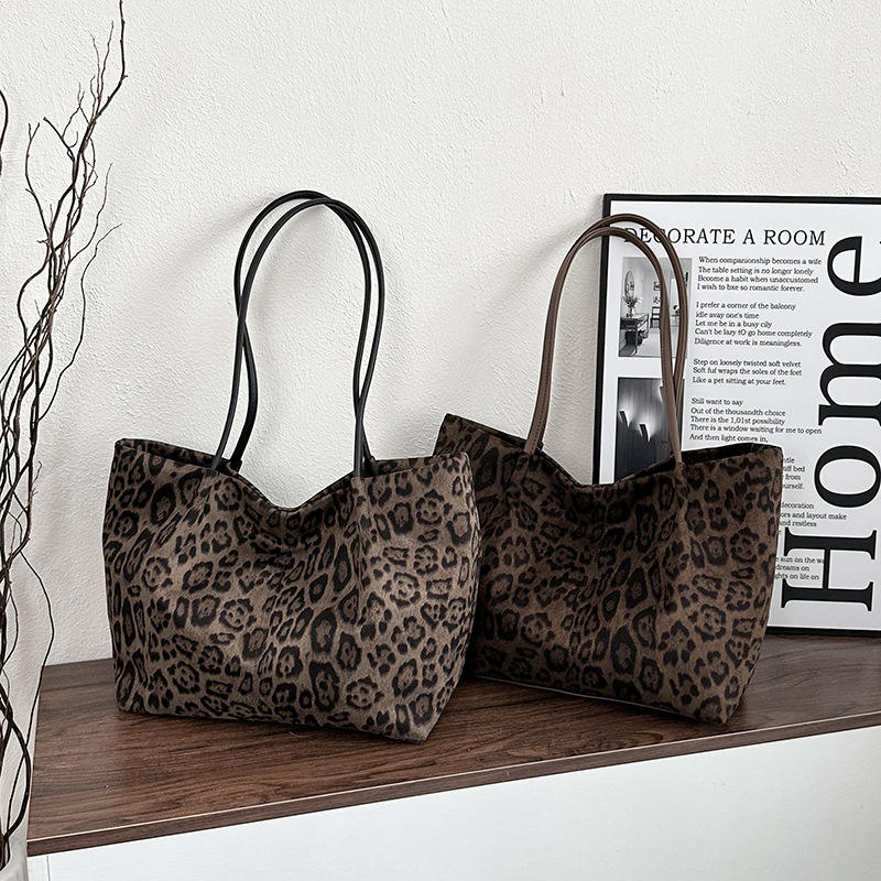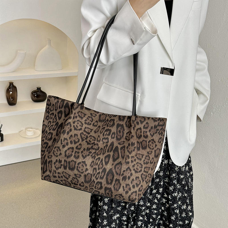 กระเป๋าสะพายไหล่ของผู้หญิงกระเป๋าสะพายไหล่สายเดียวความจุขนาดใหญ่เก๋ไก๋เรียบง่ายทันสมัยพิมพ์ลายเสือดาว