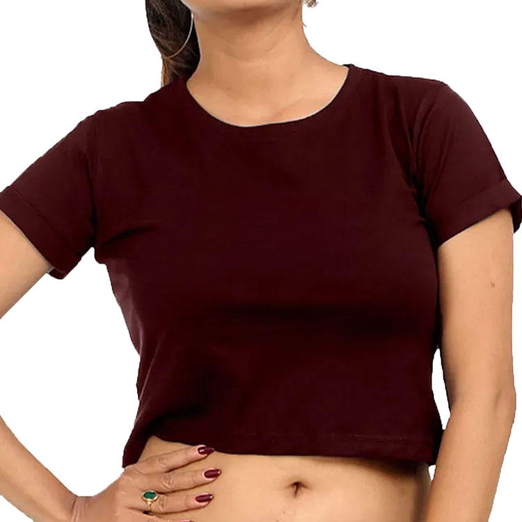 เสื้อครอปท็อปผู้หญิงคุณภาพสูง ผ้าถักระบายอากาศ 100% ผ้าฝ้าย ดีไซน์สั้นลำลอง