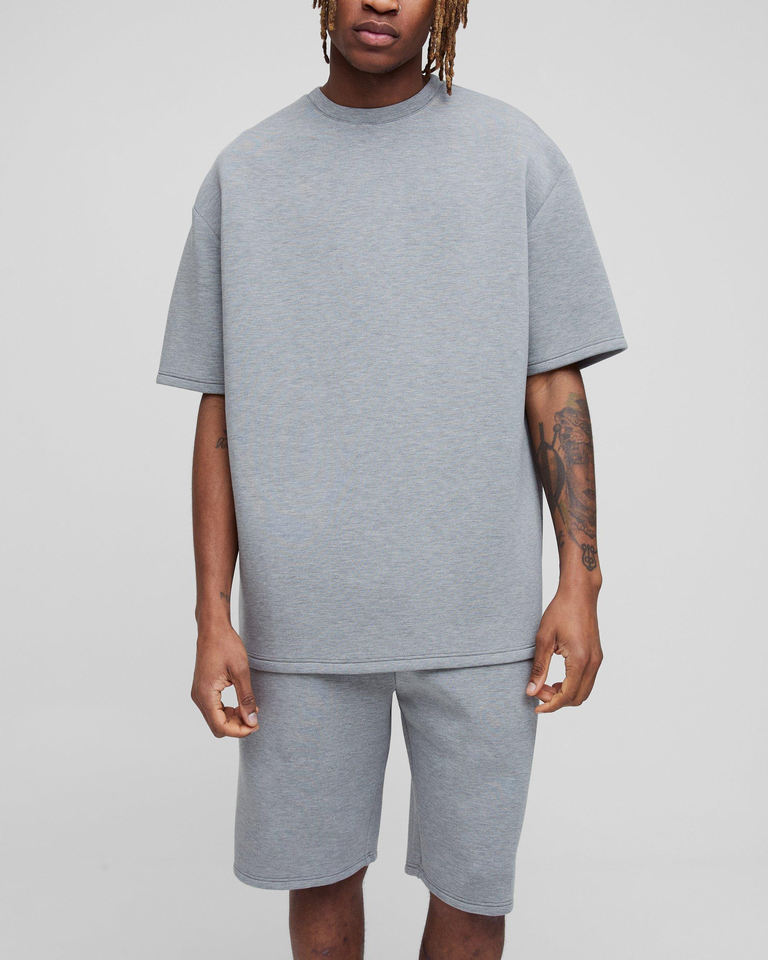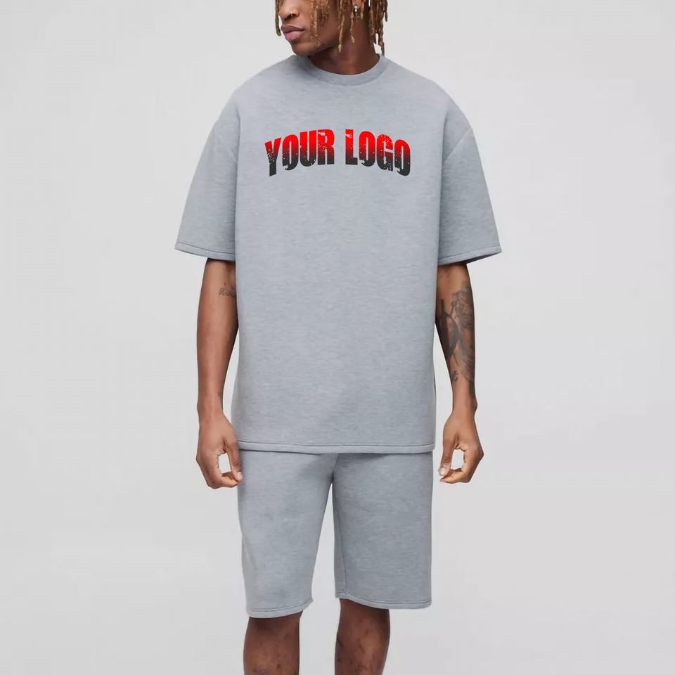 ชุดวอร์ม2ชิ้นสำหรับผู้ชายเสื้อโอเวอร์ไซส์ผ้าคอตตอนสำหรับ100% ชุดวอร์มสีเทาเข้มแฟชั่นใหม่