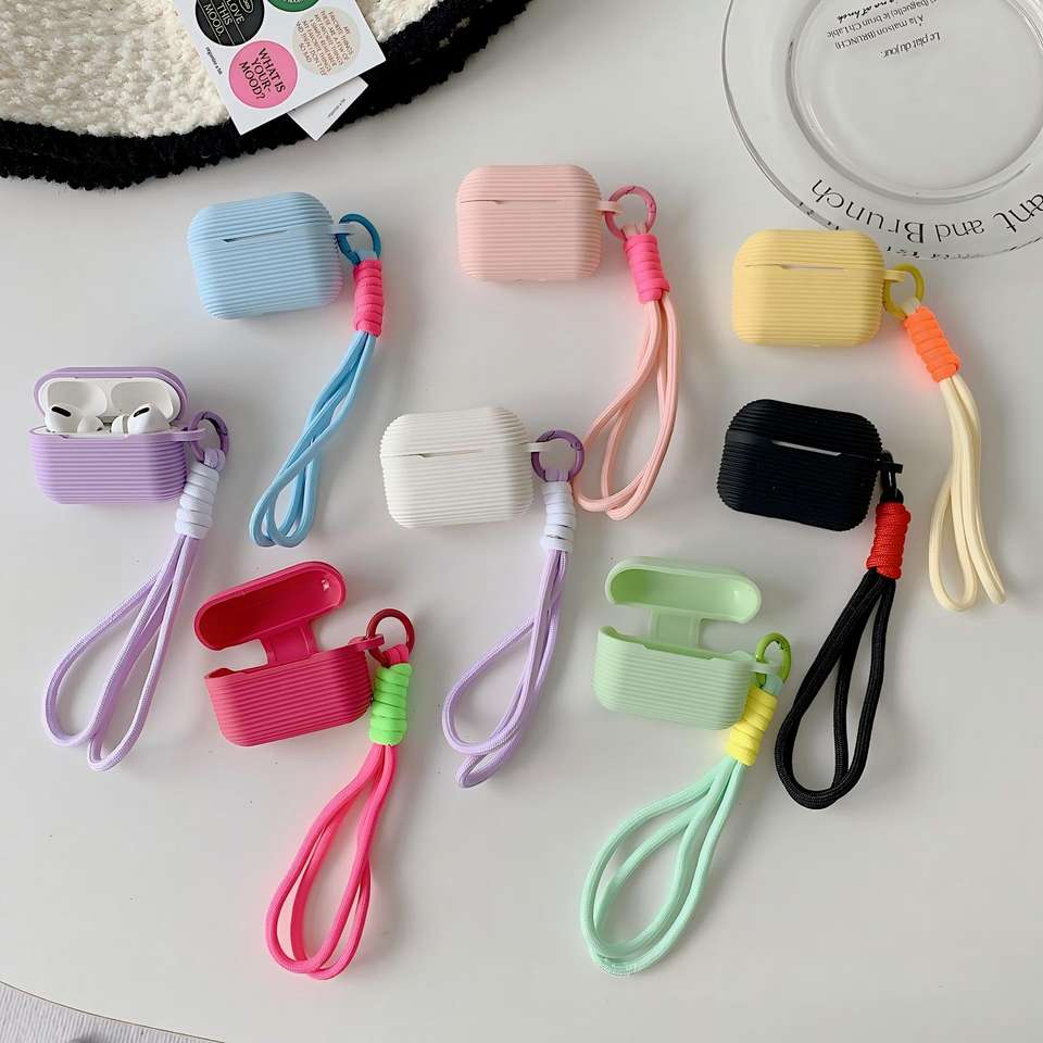 เคสซิลิโคนนิ่มแบบใหม่สำหรับหูฟัง Apple พร้อมสายคล้องข้อมือสำหรับ AirPods เคสซิลิโคนนิ่มแบบพกพาสัมผัสนุ่มเหมือนผิว