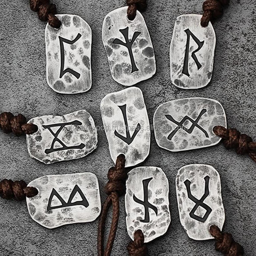 ใหม่สร้อยคอปลอมแปลงไวกิ้งหมาป่าหัวเหล็กจี้ Rune สแกนดิเนเวีย Rune อุปกรณ์เสริม Norse พระเครื่องประดับ
