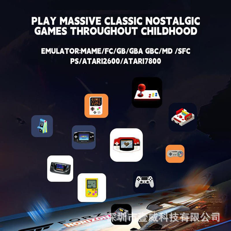 คอนโซลเล่นเกม BT TV ไร้สายใหม่พร้อมหน่วยความจำ64GB และปลั๊กสำหรับผู้เล่นสองคนเล่นเกมที่บ้านแบบข้ามพรมแดน