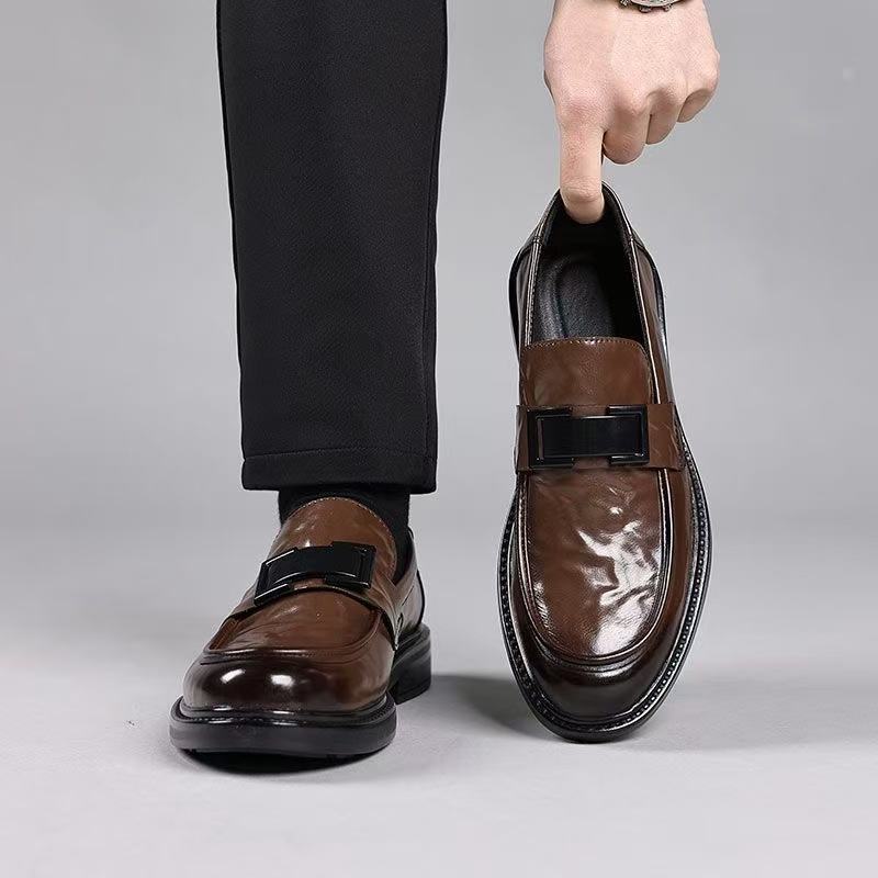 รองเท้าหนังแฟชั่นทางการสำหรับผู้ชาย, รองเท้าหนังแท้รองเท้าโลฟเฟอร์สไตล์อังกฤษแบบ SLIP-ON ระบายอากาศได้รองเท้าโลฟเฟอร์ลำลอง