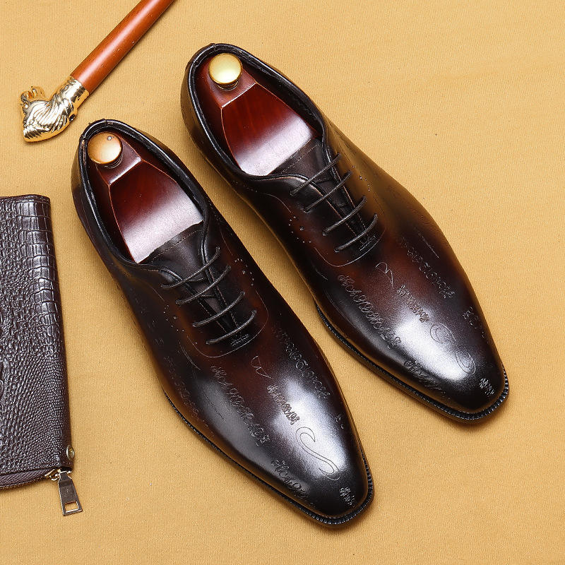 รองเท้าทางการของผู้ชายหนังแท้หัวแหลมสลักรองเท้าออกซ์ฟอร์ด
