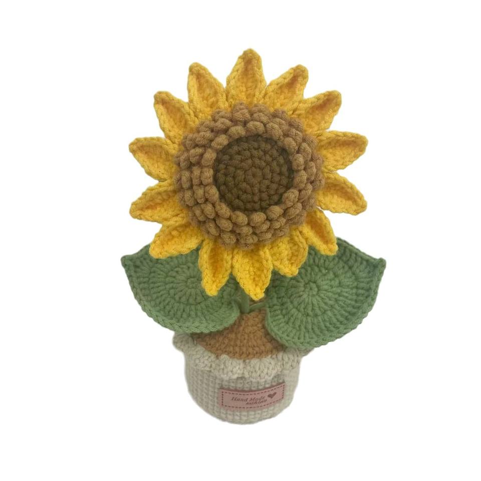 ช่อดอกไม้ถักโครเชต์ทำด้วยมือแบบใหม่ดอกทานตะวันกระถางชั้นสูงกระถางต้นไม้จำลองดอกไม้เป็นของขวัญ