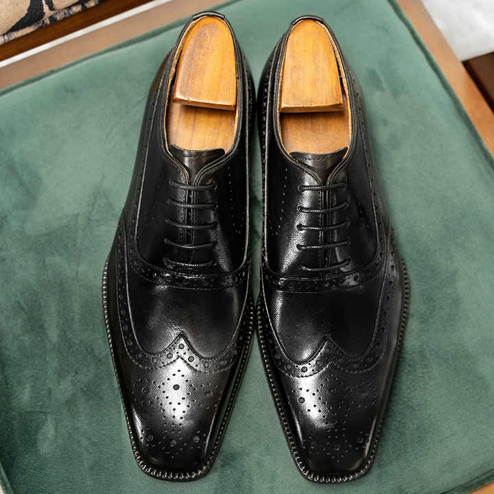 รองเท้าหนังผู้ชายคุณภาพสูงใหม่พร้อมหัวสี่เหลี่ยมและลวดลายสลักรองเท้าทำงานแบบทางการของผู้ชาย