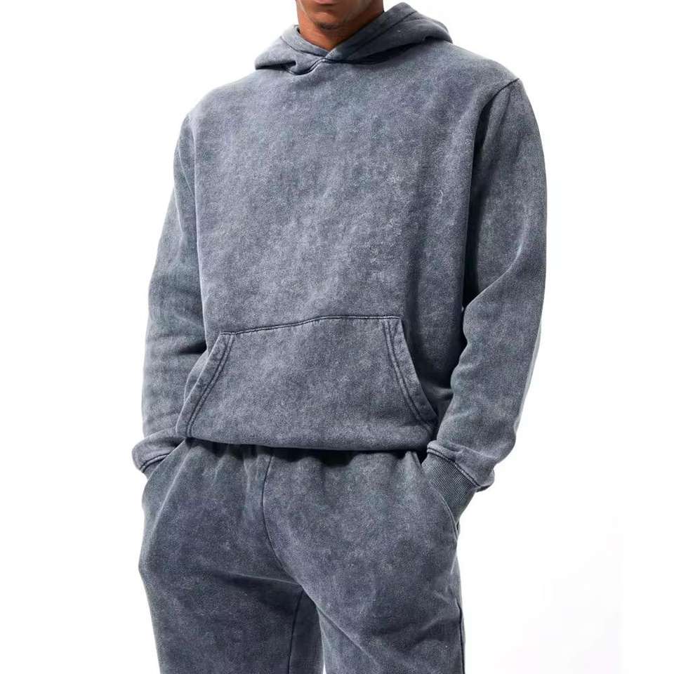 เสื้อวอร์มแบบสวมหัวผ้าซักกรดของผู้ชายเสื้อขนแกะผ้าฝ้าย100% ปรับแต่งโลโก้ได้
