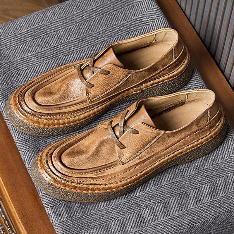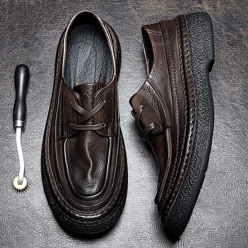 New high-quality breathable soft-soled business casual men's English-style retro handcrafted genuine leather low-top shoes