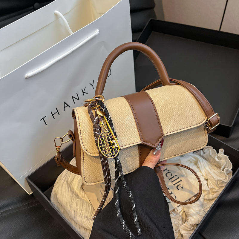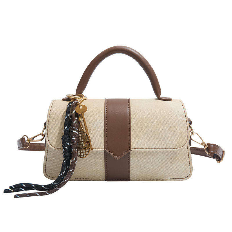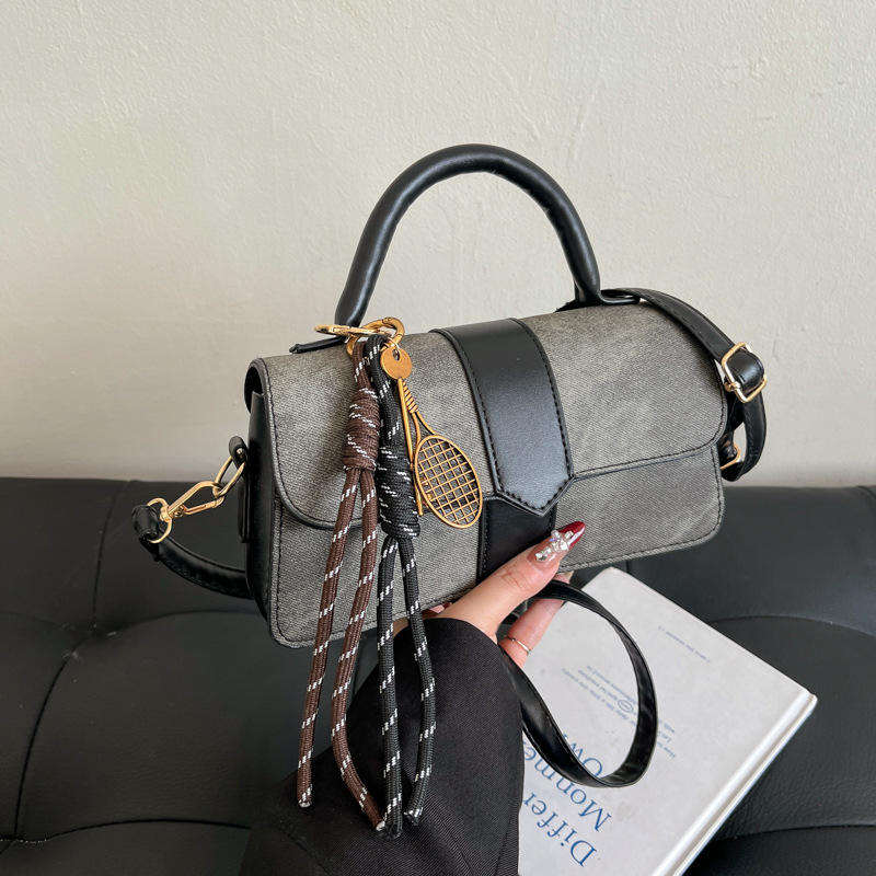 กระเป๋าสะพายไหล่ทรงสี่เหลี่ยมคุณภาพสูงรุ่นใหม่ พร้อมจี้ห้อย กระเป๋าทรงอานม้าสำหรับผู้หญิง